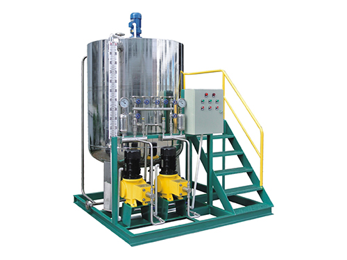 本裝置主要包括藥液計(jì)量系統(tǒng)、溶配系統(tǒng)、計(jì)量投加系統(tǒng)、安全系統(tǒng)和控制系統(tǒng)等五部分。